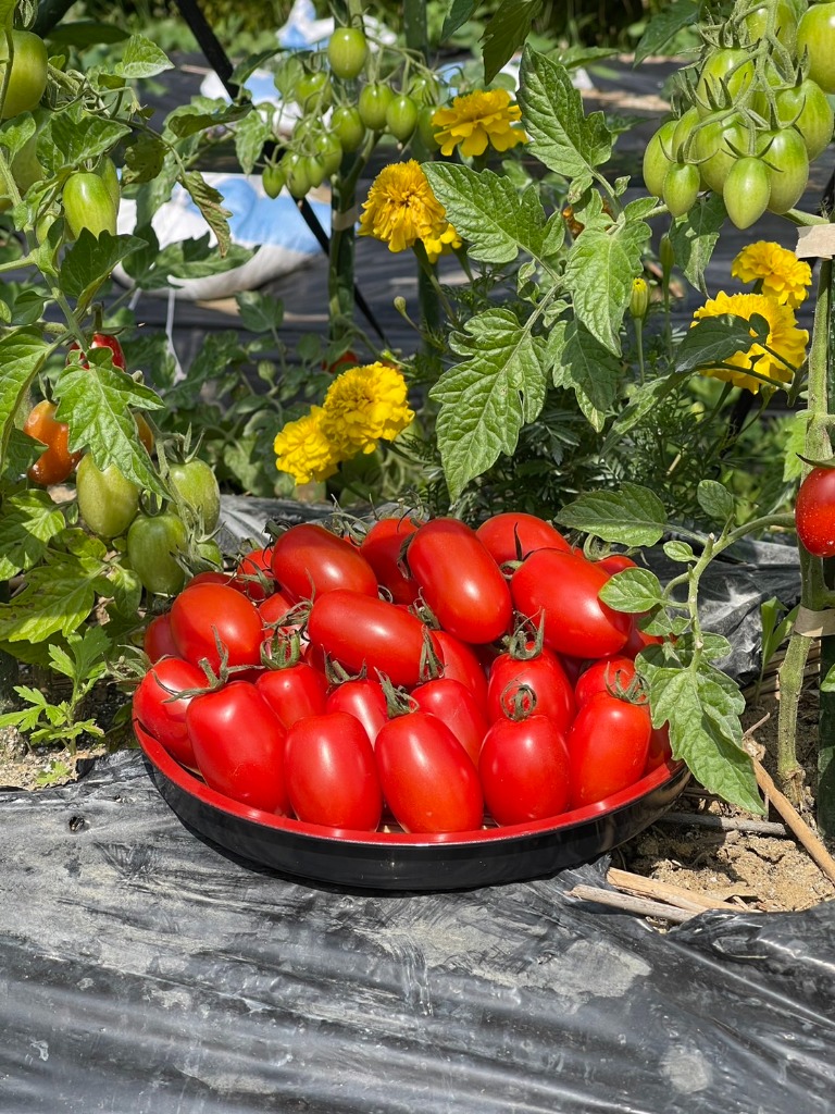 今回収穫したミニトマトは「アイコ」という品種です。アイコは甘みと酸味のバランスが絶妙で、ジュージーで爽やかな味わいが特徴です。当ファームでは、炭素循環農法とテラプレタの土作りを駆使して、豊かな風味と栄養価を保ちながら育てています。そのため、ひと口食べるだけで自然の力を感じることができるでしょう。